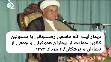 دیدار آیت الله هاشمی رفسنجانی با مسئولین كانون حمايت از بيماران هموفيلى و جمعى از بيماران و پزشكان